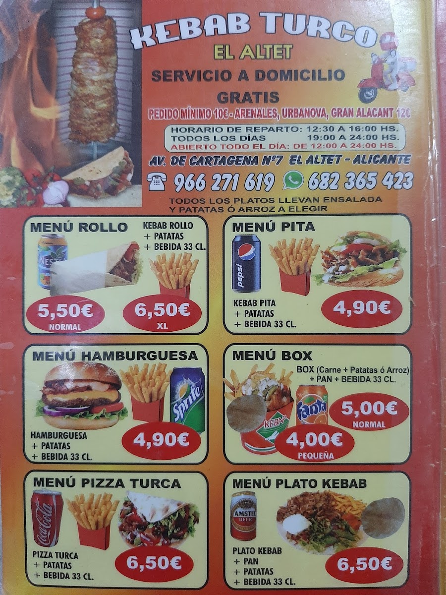 Kebab Turco El Altet, located on Av. de Cartagena in Elche, Alicante, is a cherished Turkish restaurant that delights both locals and visitors. Renowned for its generous portions, the restaurant offers an array of mouthwatering kebabs, including the notably XXL roll that patrons rave about for its satisfying spice level and rich sauces. The ambiance outside under the trees adds to the experience, transforming each meal into a mini getaway. Guests have highlighted the affordability of the meals, often enjoying a complete dish with a drink for under 5 euros.